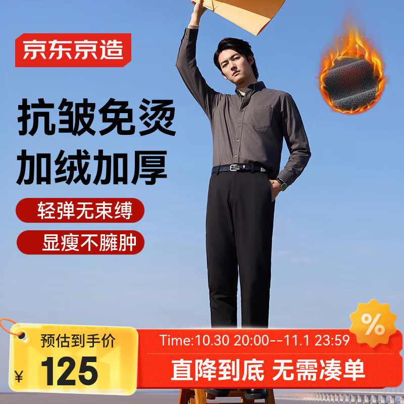 包邮 京东京造【加绒加厚】休闲裤男西裤子男士服装秋冬易打理西装裤 黑色2XL